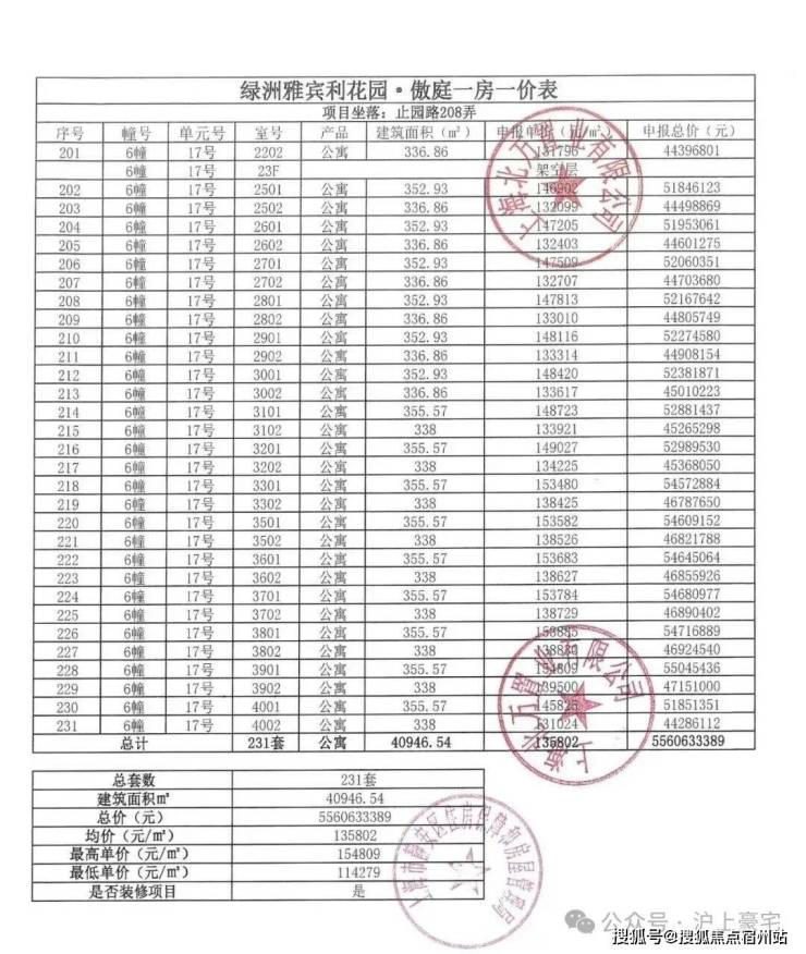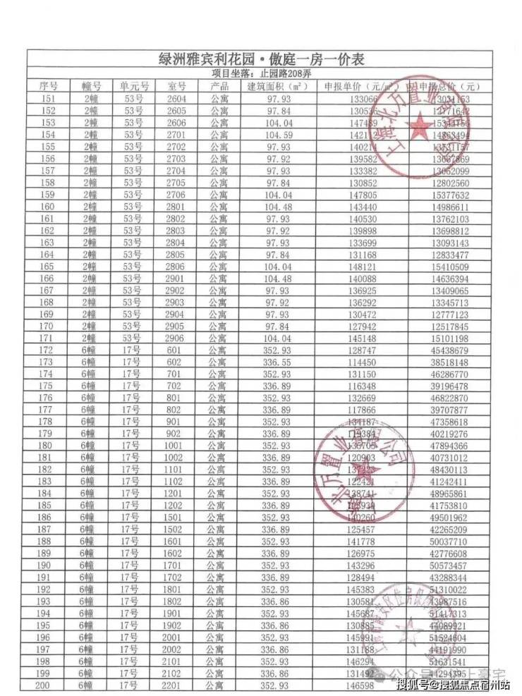 万科中兴傲舍一房一价表▼