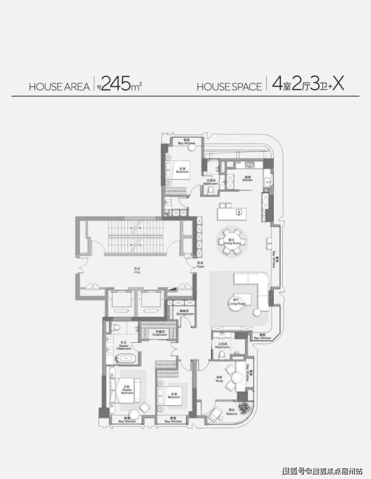 此外,客餐厅一体化、约 270° 弧形观景阳台配全卧飘窗皆为标配。