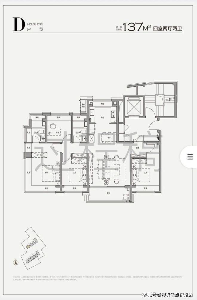 建面约137㎡的4房户型,在同等面积下实现了更精巧的功能布局,标配入户玄关,客餐厅、厨房、阳台一线贯通,家政间,通透感十足270°全景舱设计是项目一大亮点,部分户型通过北/南/西三向展开近36米连续玻璃幕墙,西南向无遮挡,城市与公园景一览无余