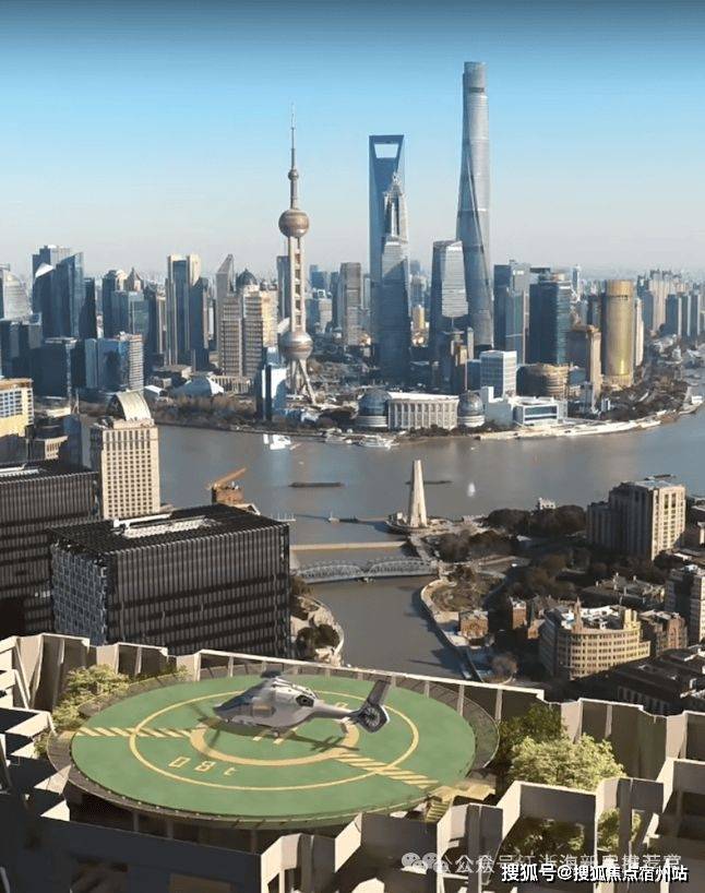 大楼主体分为3段,中间设置了两个“消防避难层”,还有大量空中绿化。优雅、永不过时的外立面,与外滩华尔道夫系出同门。更自带全上海独一无二的住宅屋顶直升机坪,160平米私人飞机入户。