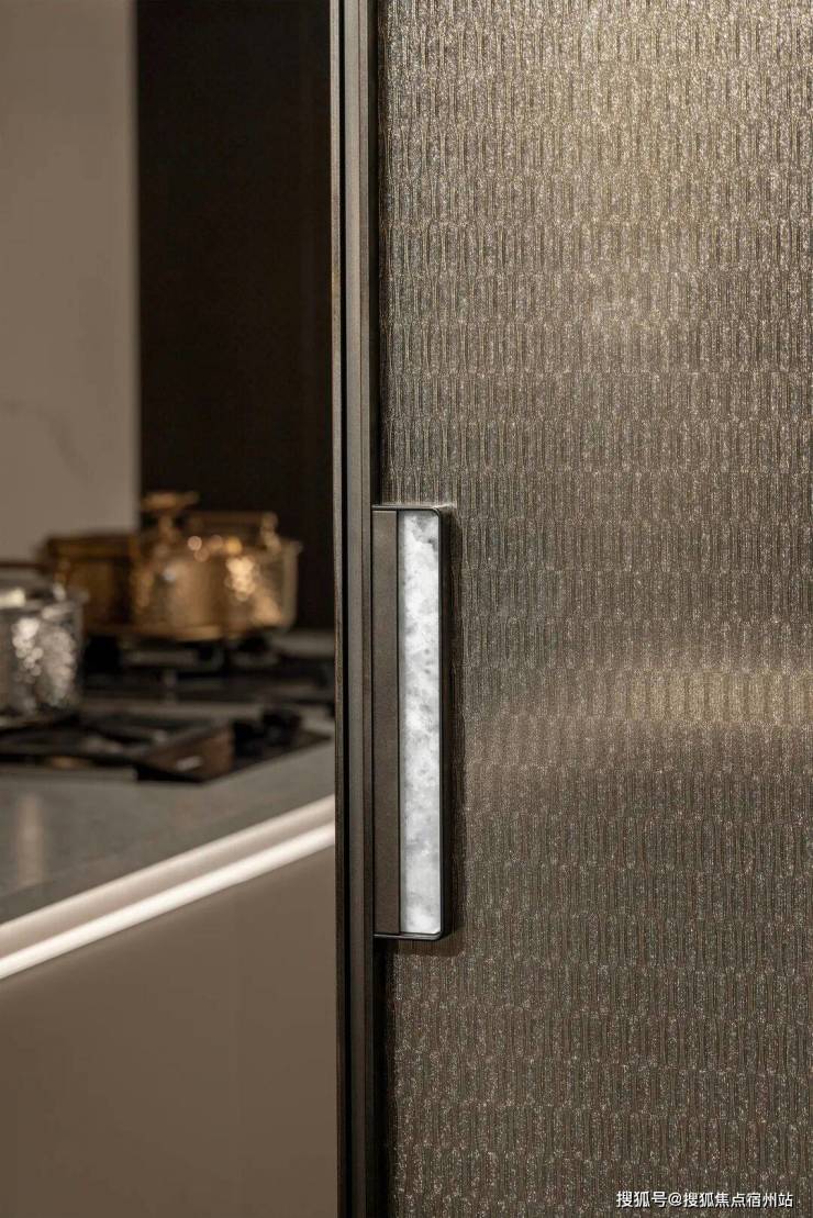 厨房内竹纹夹丝玻璃门、威乃达坡璃烤漆橱柜、与卡拉拉金大岩板台面相融,同时嘉格纳十件套满足每一种味蕾的偏好,厨房内,灶台/油烟机/洗机/冰箱(独立分体设计)五件套;向外,嘉格纳咖啡机/暖碟机/酒柜/烤箱/蒸箱等西厨五件套配置,构筑中西共融的烹饪场域。