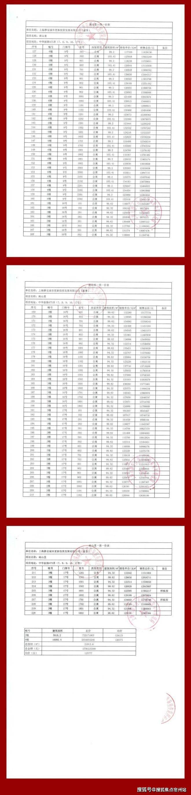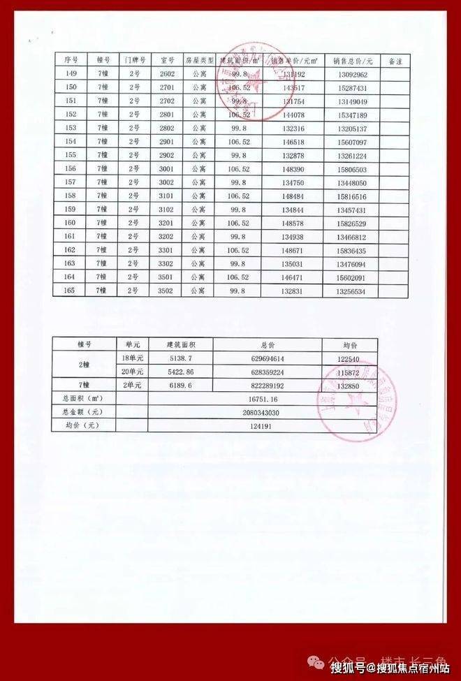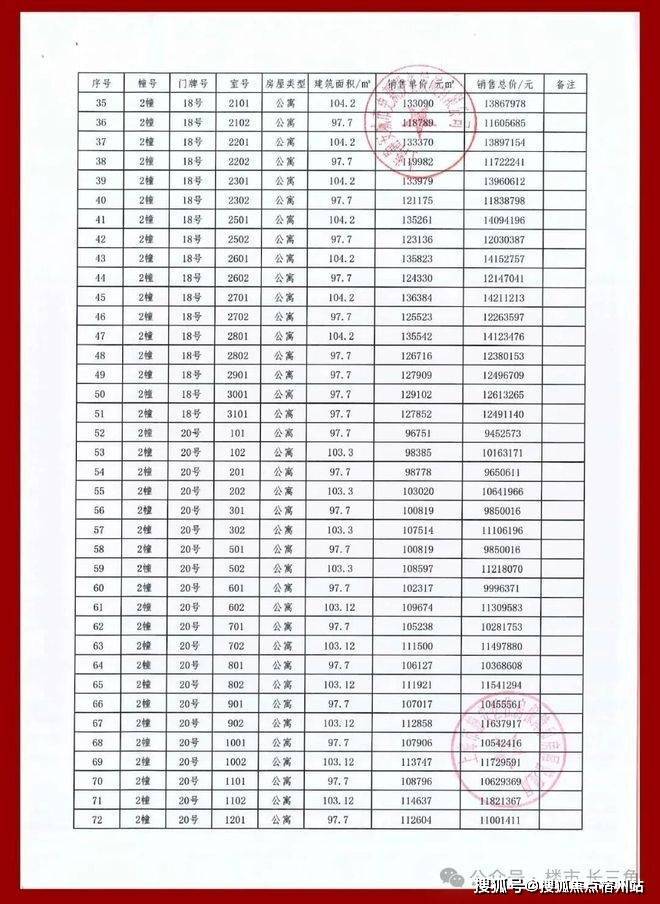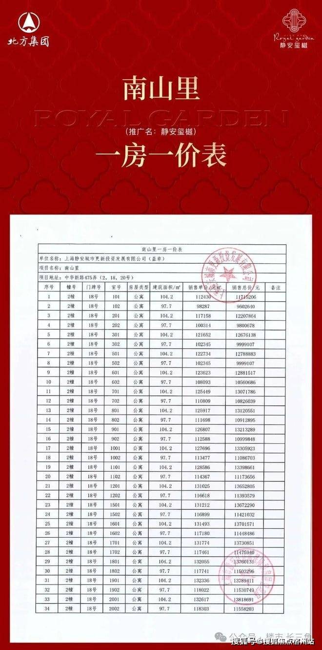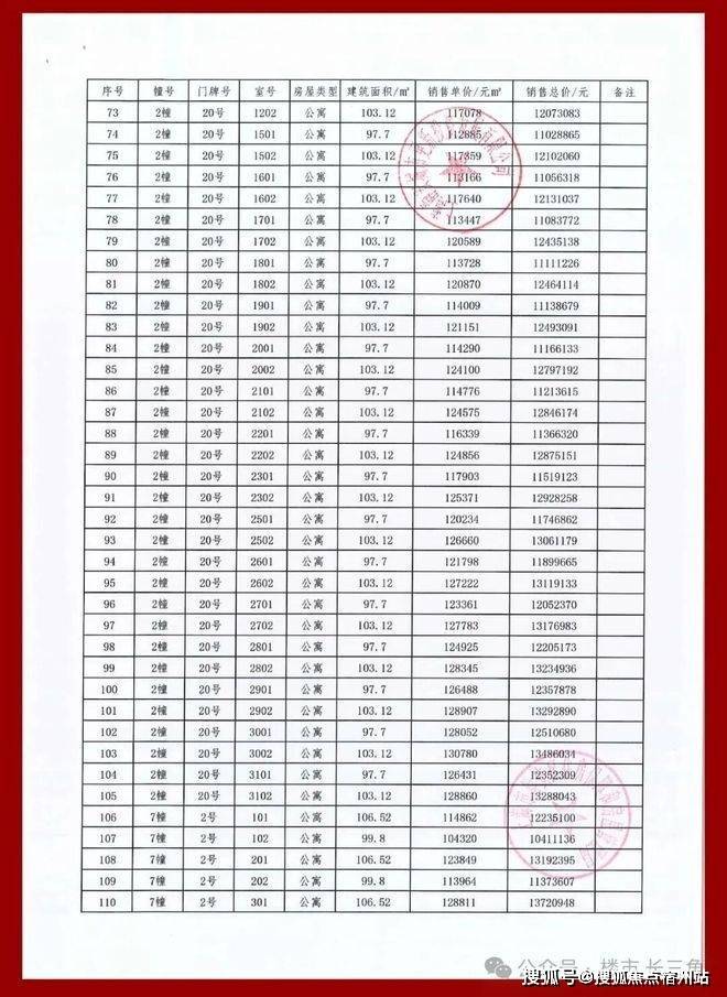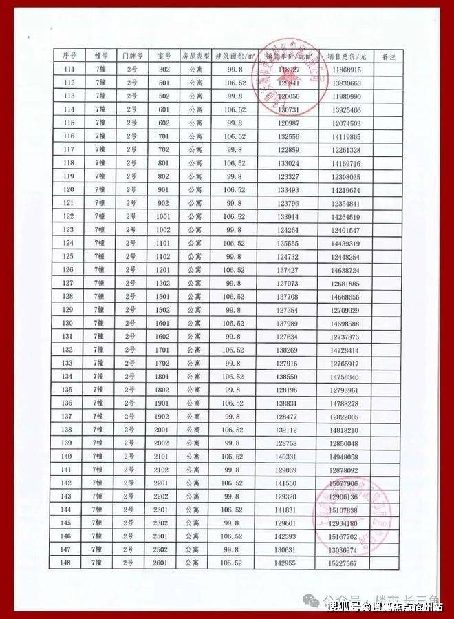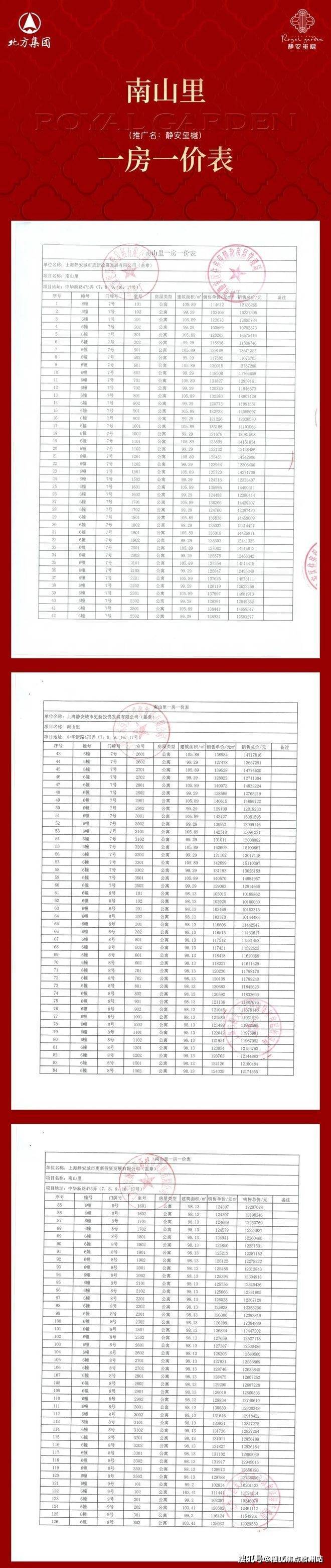 项目一房一价表
