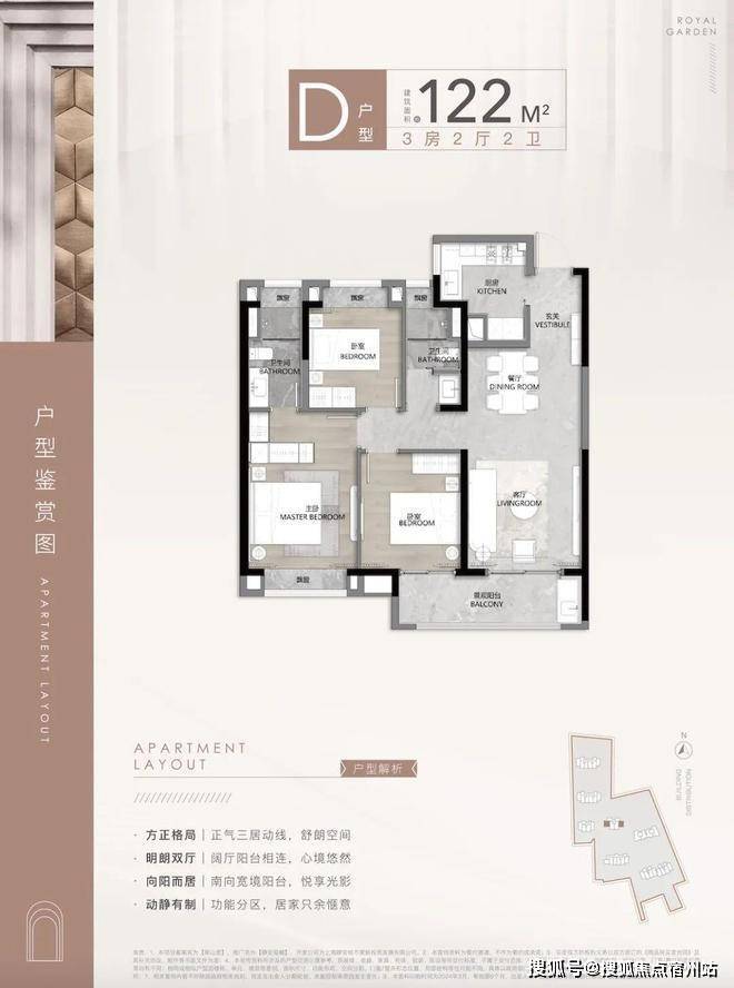 第一个亮点, 就是动静分离, 功能区和休息区互不干扰,客餐厅、厨房等公共活动区集中在一侧,卧室等休息区全部一侧,保证了私密性!静安玺樾售楼处电话400-856-9058