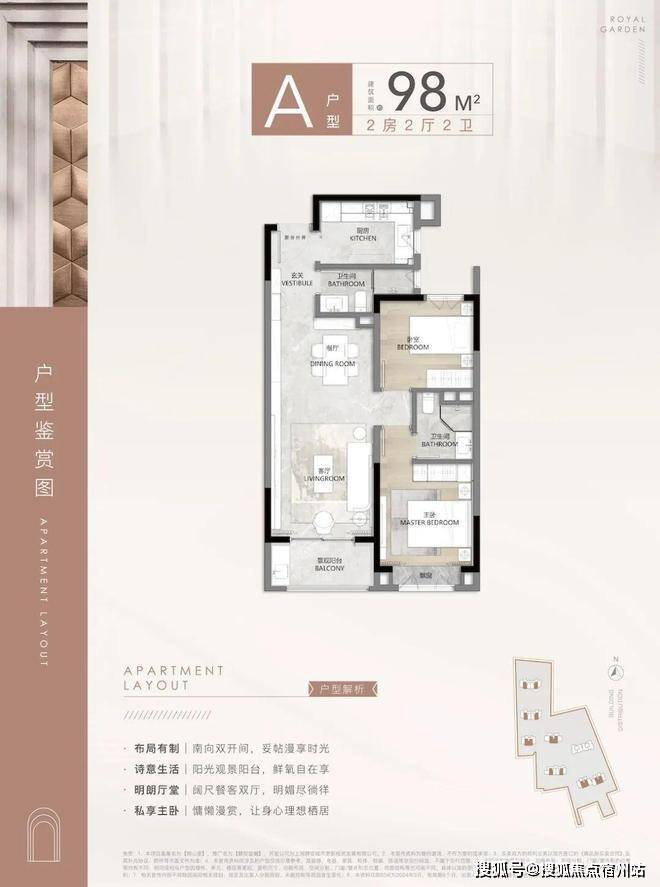 建面约98㎡2房2厅2卫▼