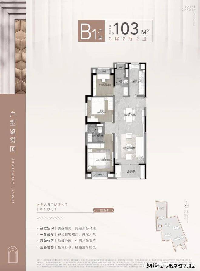 建面约104㎡3房2厅2卫▼ 静安玺樾售楼处电话400-856-9058