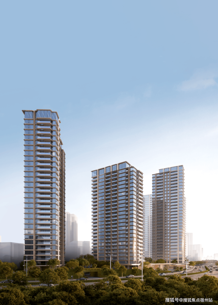 建筑布局 :整体抬高 1.5-2 米,营造 “托盘明珠” 的归家礼仪,既隔绝了城市喧嚣,又提升了社区私密性与尊崇感;建筑采用南北向排布,楼间距最大化,既保证了每一户的采光与通风,又形成了错落有致的城市天际线。