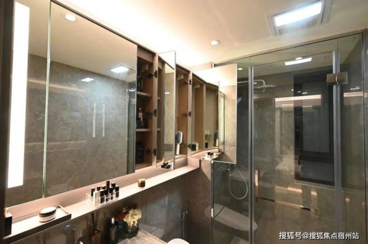 最后值得一提的是,项目还有很多个性化定制设计,包括 防雾镜、美颜灯、电热毛巾架、岛台轨道插座 (约93㎡户型)、 预留美妆冰箱 等。