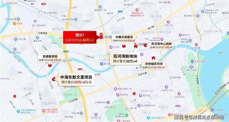 二手房方面,项目周边房龄较新的二手小区,比如凯德星贸邸、中粮天悦壹号、华侨城苏河湾等挂牌均价也在20万/㎡甚至朝上!