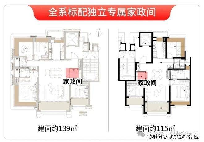 项目把顶豪专属的独立家政间,全系下放到两大主力户型中,彻底告别 “阳台变洗衣房” 的居住痛点。