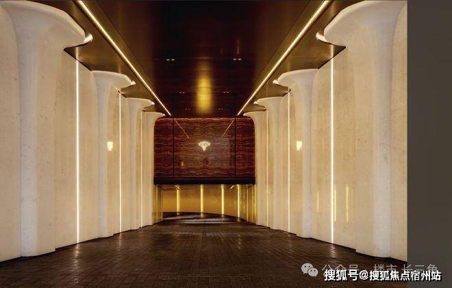 社区含“奢材”量很高。 门庭延街的外立面,以精工定制弧形 米色石材 为主调,镶嵌典藏级 老虎玉大理石 ,点缀 古铜色现代海派艺术感 灯器,整体呈现出百年海派的贵雅气质。