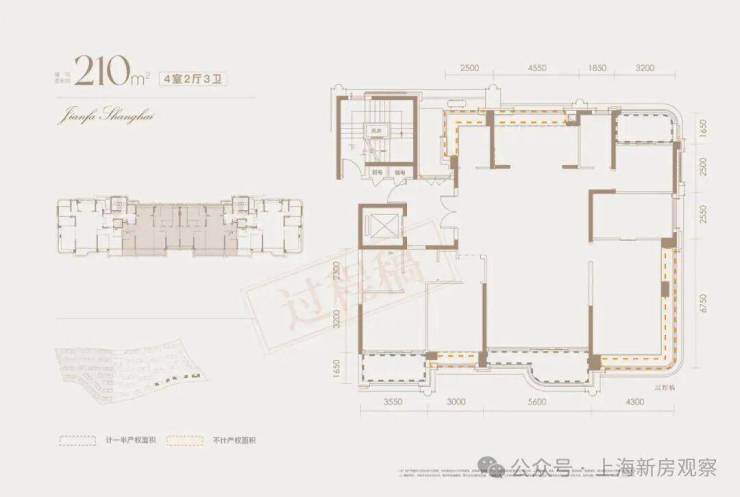 建面约210㎡户型还是类一梯一户设计,户户私享建面超9㎡墅级序厅,双开门、双玄关、双动线入户,仪式感私密性爆表。该户型整体的实得率接近95%,远超同板块其他二手小区,在整个上海也是罕见对手!