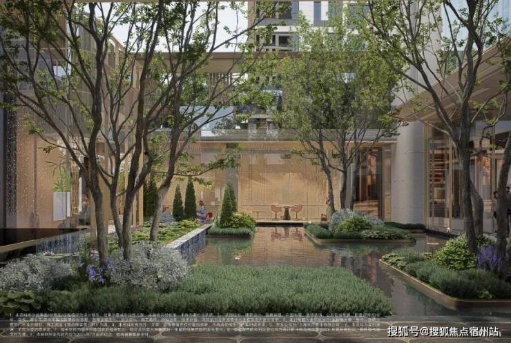 向城市让渡一些开放空间,以前街后河、约12000m滨水公园(代建)等一体化柔性边界,打造「外揽城市绿肺,内藏森境天地」公园住区,让繁华都市与静谧生活自然过渡。