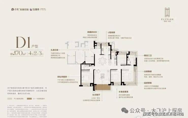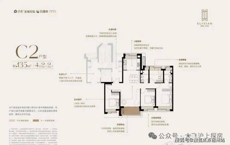 我们来看一下保利·天奕的户型设计。新一代户型讲究的是通透,保利·天奕建筑面积约135平米的户型做出了通常超大户型才有的四开间朝南。次卧、客厅、开放式书房、拥有270度采光的主卧套房都是朝南的。