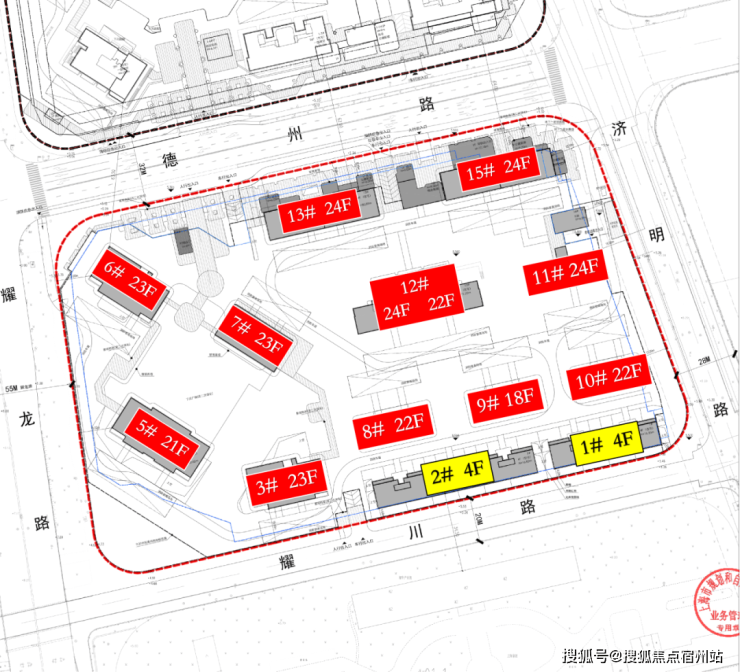 根据规划,04-1地块拟建11栋高层住宅和2栋叠拼住宅(1#和2#)。