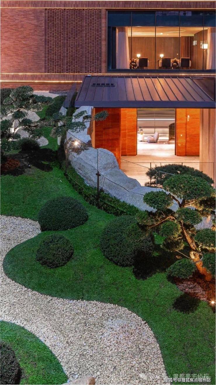 为了使我们在稀缺的地段营造稀缺的资源,把生活的想象现实化, 越秀·外滩樾还在会所引 “山水入园” 。在空间有限的情况下,进行垂直空间的挖掘,营造了 坡道景观、山水庭院和会所 。
