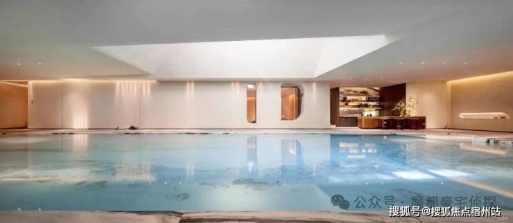 游泳池以罗马会场泳池为灵感,汲取《观瀑图》的山水意境,将古典与现代完美融合。池畔以大理石铺就,线条优雅如古罗马建筑的恢弘气势,而池中水波粼粼,光影交错间,水幕如瀑,营造出“人在画中游”的诗意境界。