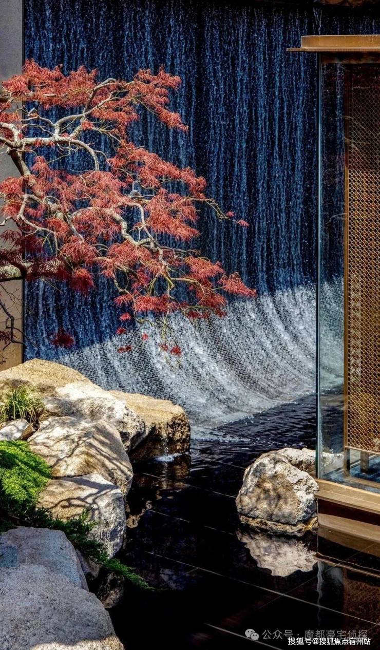 这里还遍布了与“山”景呼应、自地面叠层的垂瀑和水景 ······