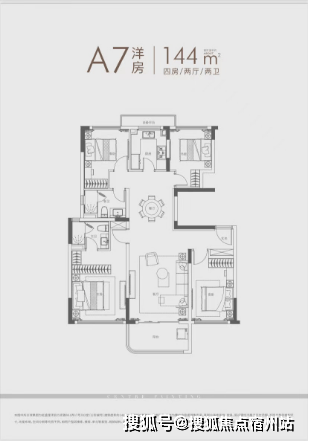 四房间呈四叶草布局 分布于户型四角,互不打扰;