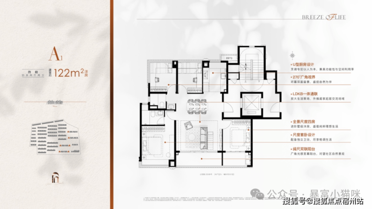 总价约514万起即可上车的王炸级洋房户型,三批次同步将热势加推!建面约122㎡4房2厅2卫墅境洋房,3+1飞机户型,客厅开间约8m,LDKB一体化设计,以餐厅为中轴的生活交流动线,平衡生活的意趣与从容的格调;双联阳台的突破创新式设计,让整体阳台面宽突破到约8.2m;