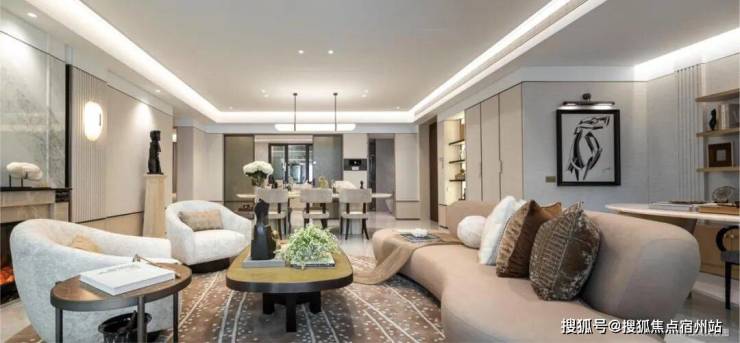 超大尺度的客餐厅,全明厨房,通过巧妙的布局,将居住、生活、社交等功能完美融合;