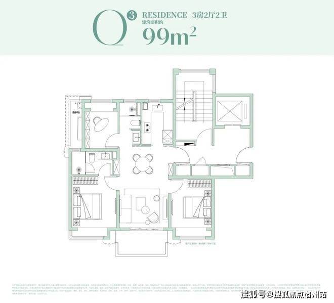 约99㎡户型设计:经典飞机户型格局!独立观景阳台!