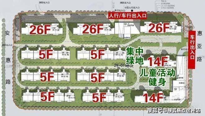 29-01地块原设计方案,✅✅时代之城售楼处电话:400 - 8824 - 258✅✅将北面人行/车行的出入口向西侧的安惠路方向进行了调整,并疑似将北面的主入口调整到了惠亚路一侧。