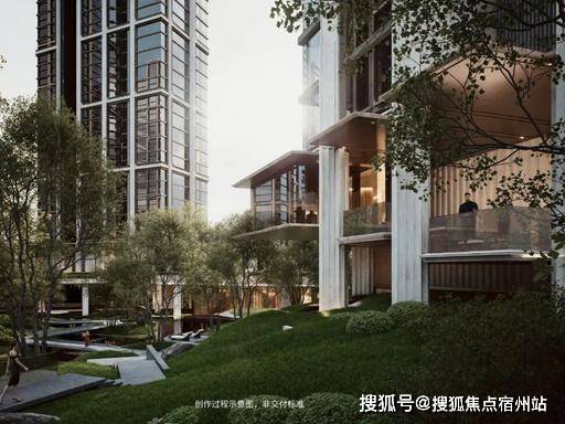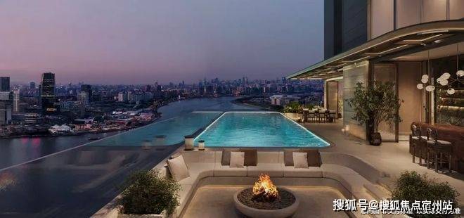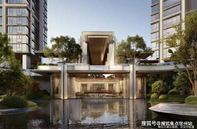 下沉水院:上海罕见的约 3500㎡下沉式庭院,以 “江河溯源” 为设计灵感,引入叠水、绿植、景墙等元素,将黄浦江的灵动意境引入社区内部,形成静谧私密的中央景观核心。