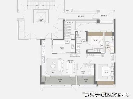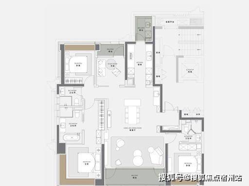 空间尺度:主卧套房面积超 30㎡,配备独立衣帽间、双台盆卫浴与 270° 观景飘窗;次卧均为套房设计,全屋无浪费空间,动线合理,兼具私密性与社交性。