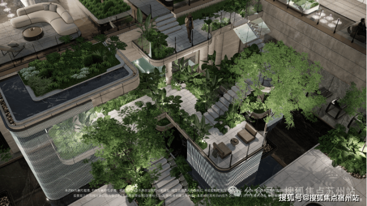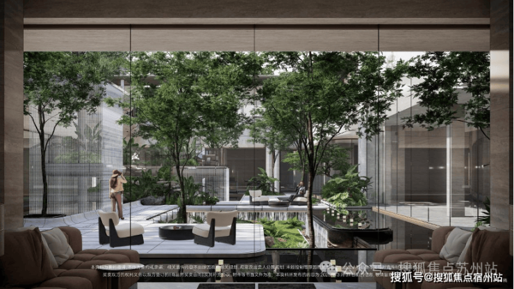 双轴线的设计,充分拓宽了视野面与观赏点位,环形回廊、精神游廊与下沉庭院通过立体景观平台相融,又创造出隔岸听泉的诗意场景。在会所、在架空层泛会所、在归家路上,每个重要生活触点,业主都能拥享独特景观和欣赏视野。