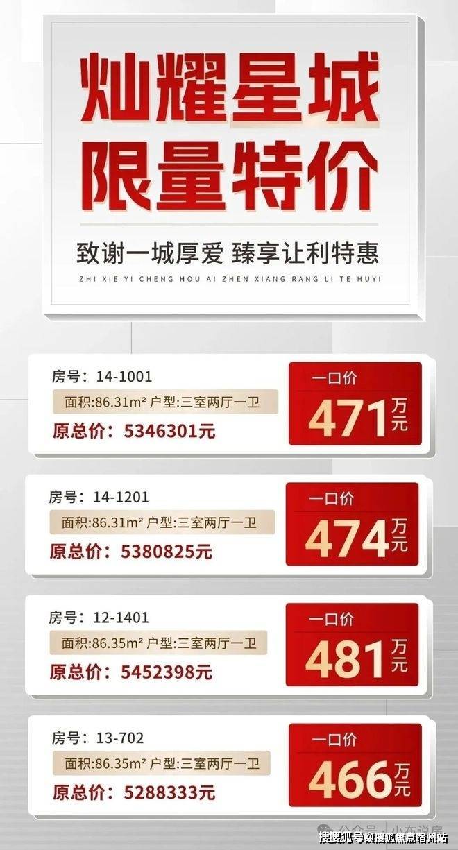 灿耀星城售楼处电话:400-8894-986(24HOTLINE24小时热线)从全市新房来看,凡是城市更新作品往往都是红盘中的红盘,比如虹口瑞虹新城、真如中海臻如府,短短几年价值已然和同板块其他次新房拉开巨大差距!