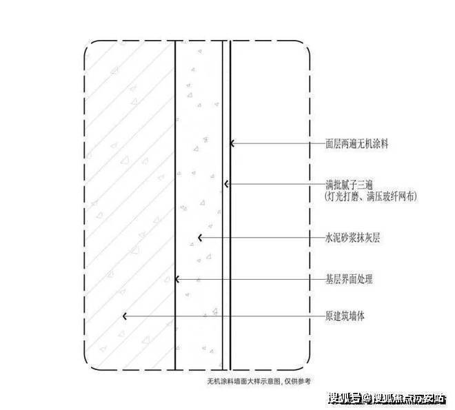 比如墙面工艺标准,由原建筑墙体基层界面主体开始,水泥砂浆抹灰层找平,到满批腻子在灯光下仔细打磨三遍,满压玻纤网布包括墙顶部分,最后再两边涂抹外墙无机材料。