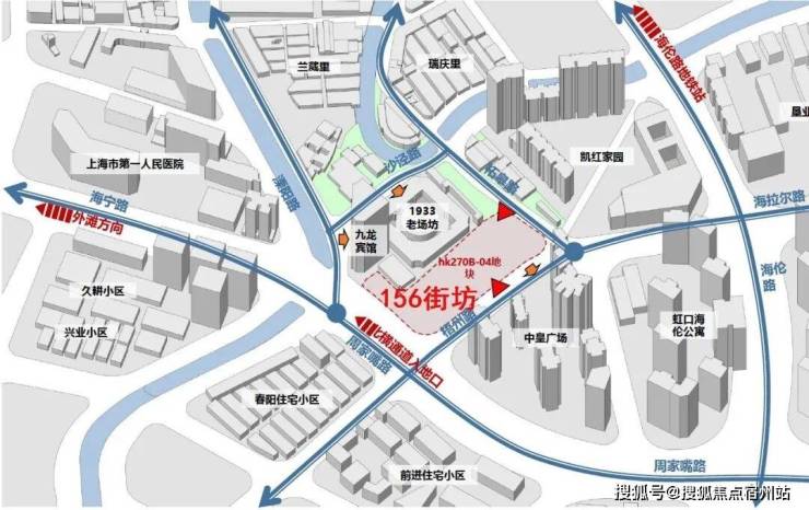 地块四至范围, 东至梧州路,隔壁是中皇广场; 西至hk270B-02,隔壁就是1933老场坊; 南至周家嘴路;北至柘皋路。