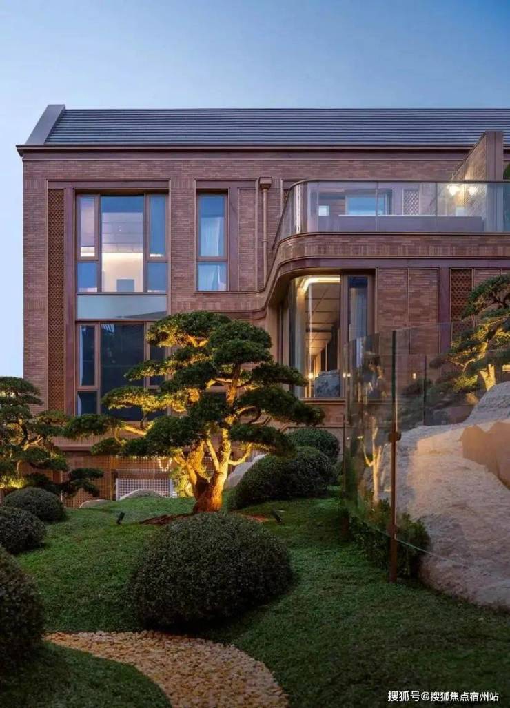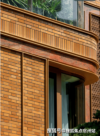 例如,在社区入户,目前已经完美呈现出来的,有强烈视觉冲击的立面 大量的红砖、红洞石及大面积的落地弧形玻璃搭配的相得益彰,整个门头既有厚重的历史感,又不失极简主义的现代美。