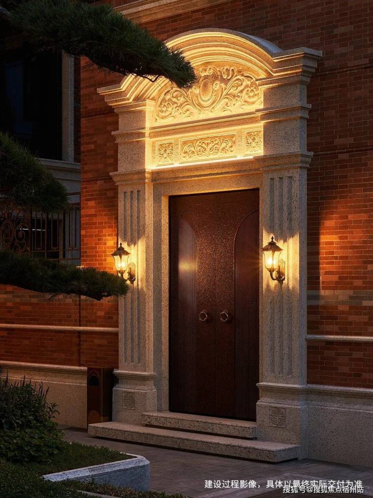 定制级泛灯光道具,遵循“风貌、饰面、外墙匹配”三大策略,灯光不刺目,不浮夸,而是以现代光影科技,将门框化为一件会呼吸的艺术装置。这不仅是照明,更是一种情绪的营造。光不夺石之华,石不掩光之温。在上海静安里的门庭,光与石共舞,金属与玉石相拥,构成一幅静谧而高贵的夜境图景。
