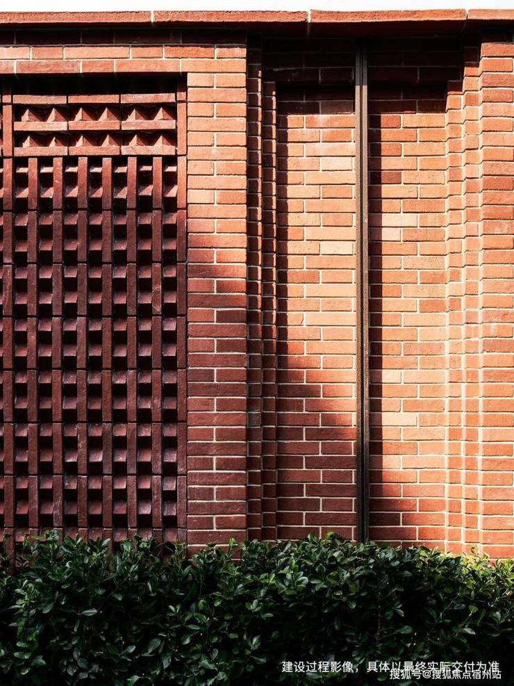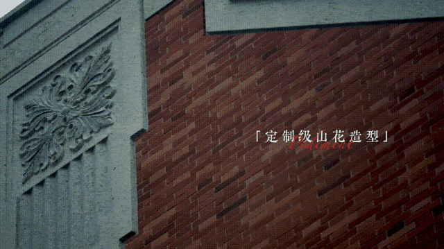 当建筑的立面仿佛被岁月温柔唤醒,一缕斜阳拂过玫瑰金麻花岗岩雕琢的山花,光影在纹路间游走,视线轻移,墙面上手工砖的梅花丁砌法如棋局落子,错落有致,元宝缝的凸起线条在光线下泛着温润的哑光,仿佛老匠人指尖摩挲过千百遍的痕迹。