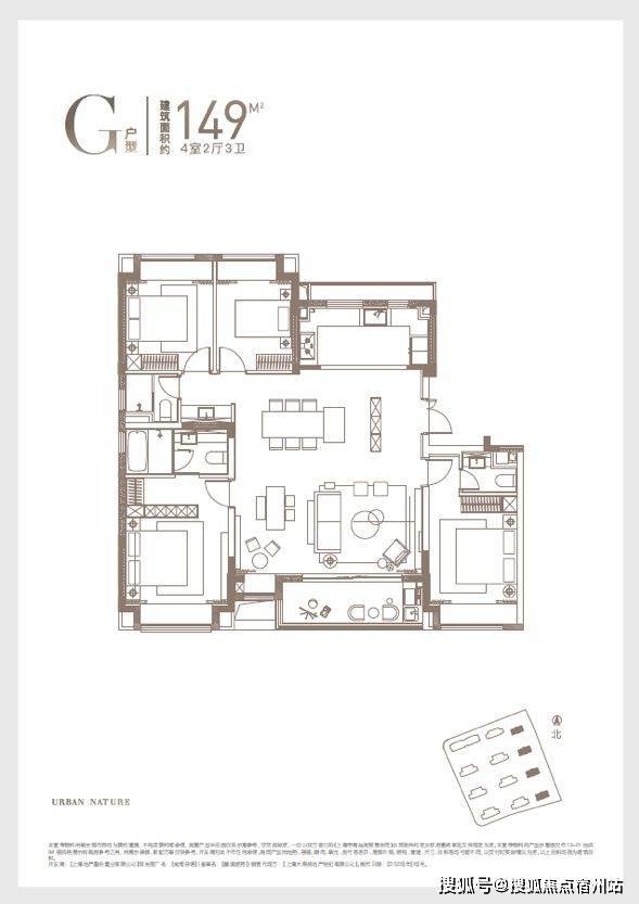 149㎡四室:奢阔尺度、全明格局,双卫设计、宽景阳台,满足三代同堂、改善置换需求,一步到位不换房。