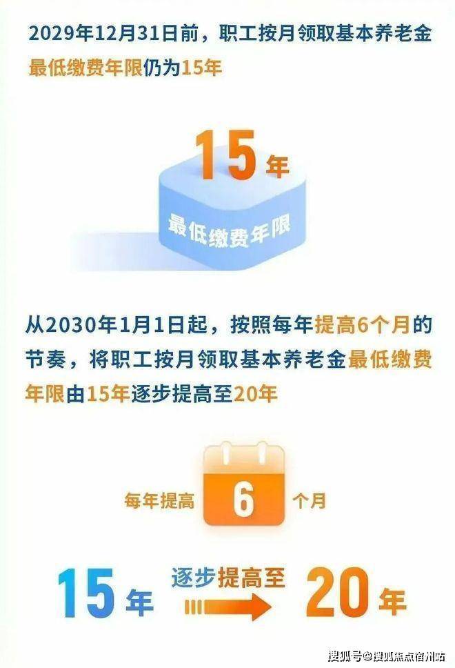 (2029年12月31日前,职工按月领取基本养老金最低缴费年限扔为15年,2030年1月1日起,最低缴费年限每年提高六个月,由15年逐步提高至20年。)