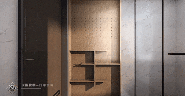 包括卫生间台盆对面做了一个墙体向后延伸,一个大尺寸洞洞板,让收纳空间又多了(仅限A10户型有)。