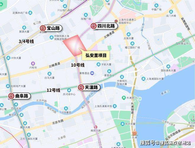 项目距离北外滩核心区,只隔了一条海宁路,距离外白渡桥、外滩源、苏州河都在直线约900米范围内。项目靠近轨交10号线四川北路站,周边还有3号线、4号线、12号线。