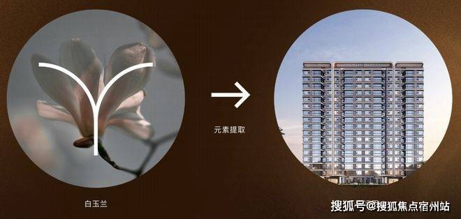 立面在上海市市花白玉兰花瓣的基础上提取形意,融入极简流线,勾勒现代都会高级感,圆弧曲线的应用,更是为天际线中增加了一抹海派的神韵。