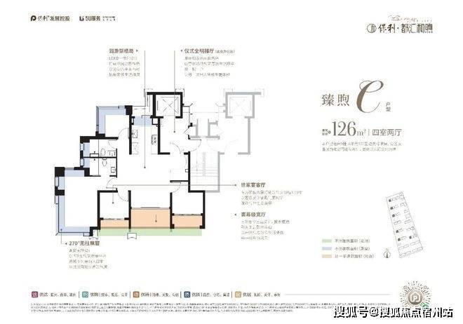 LDKB一体化格局,客餐厅、厨房、阳台通透相连,增强家人互动。保利都汇和煦售楼处电话400-856-9058