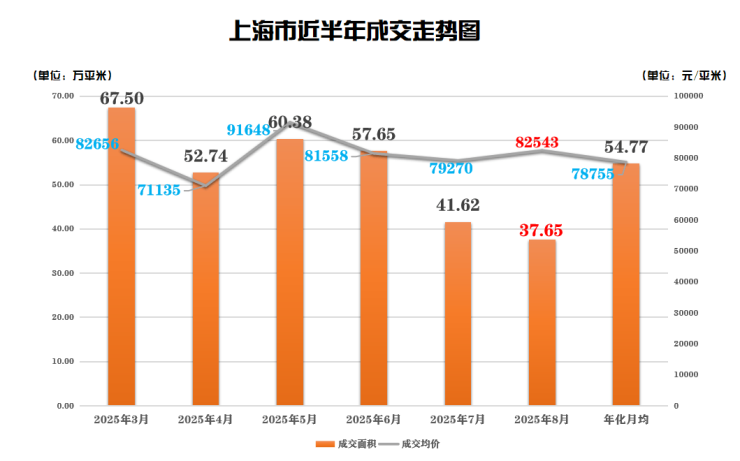 2025年8月,新房成交面积环比上月下跌,比去年同期水平下跌29.68%;成交均价较上月上涨4.13%,比去年同期水平上涨9.07%。(数据来源:上海佑威房产信息服务有限公司)