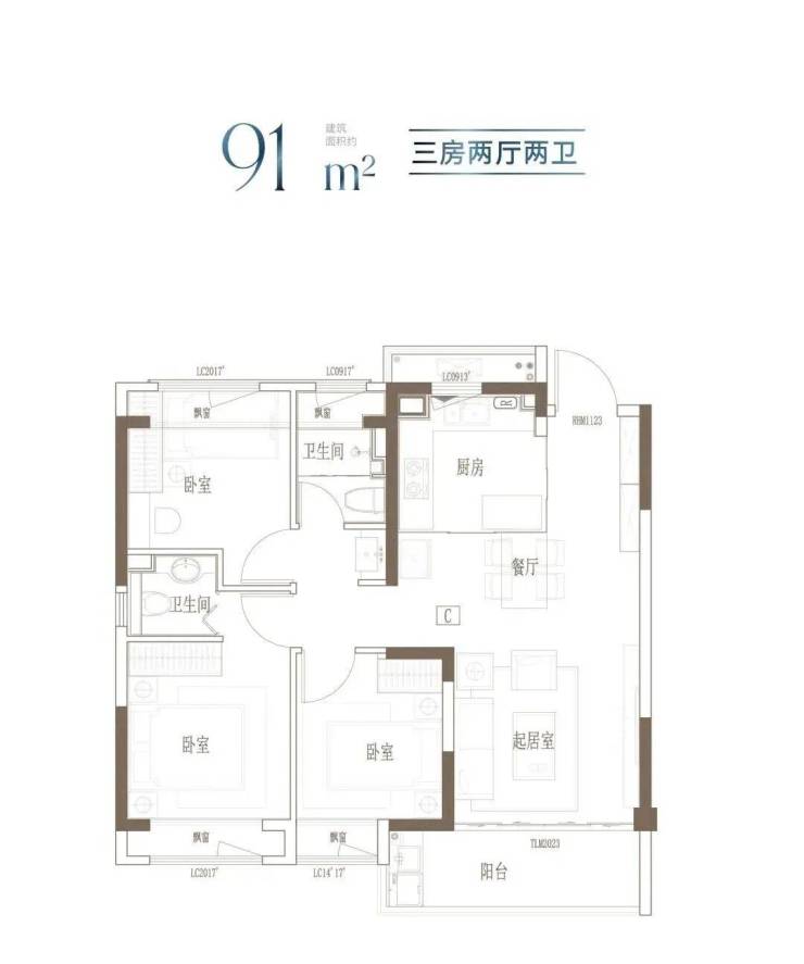 建面约100m²的阳光三房,同等面积更多功能;宽幅南向观景阳台,把居住变成风景;步入式衣帽间,给予生活更多从容。