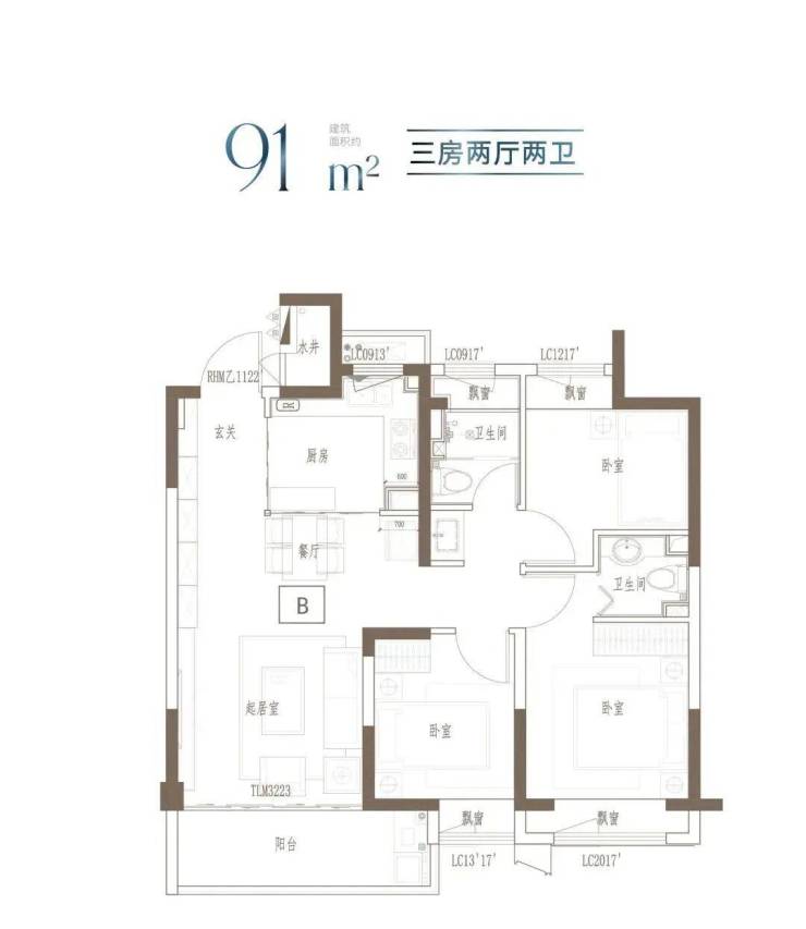 建面约91m²的这个户型,3开间朝南,全屋阳光充足;L型厨房转角移门设计,最大化空间视野;四飘窗设计,通透空间享受;动静分区,亲密有度;套房式主卧,容纳私谧生活点滴。 中铁建熙语售楼处电话:400-8894-638♢♢✔✔✔♢♢