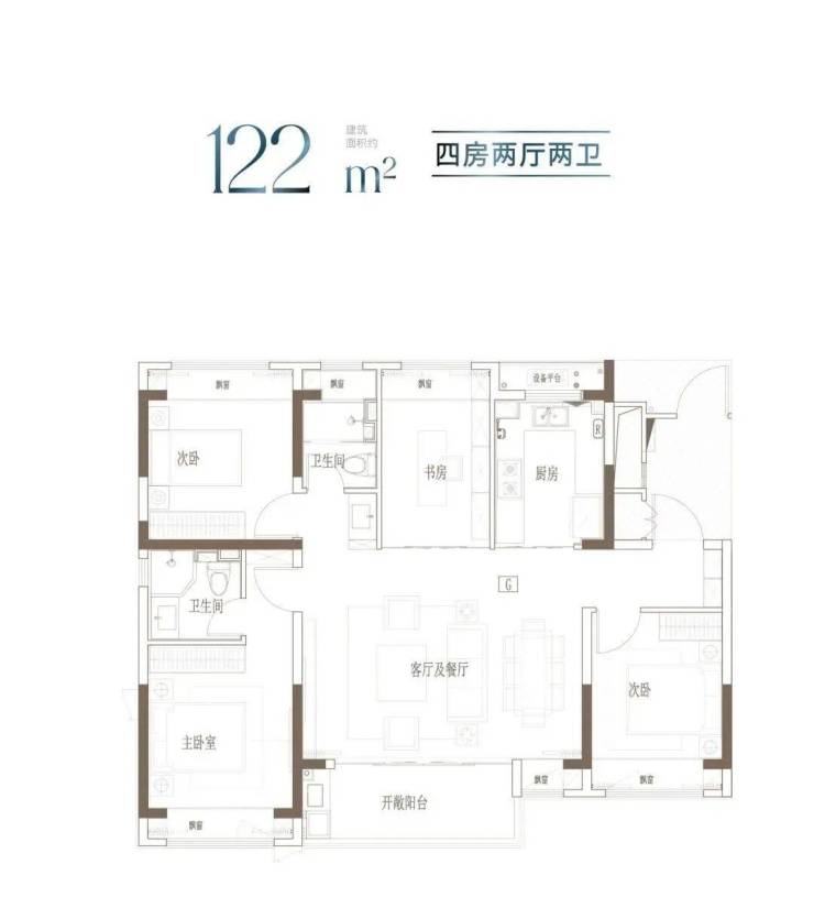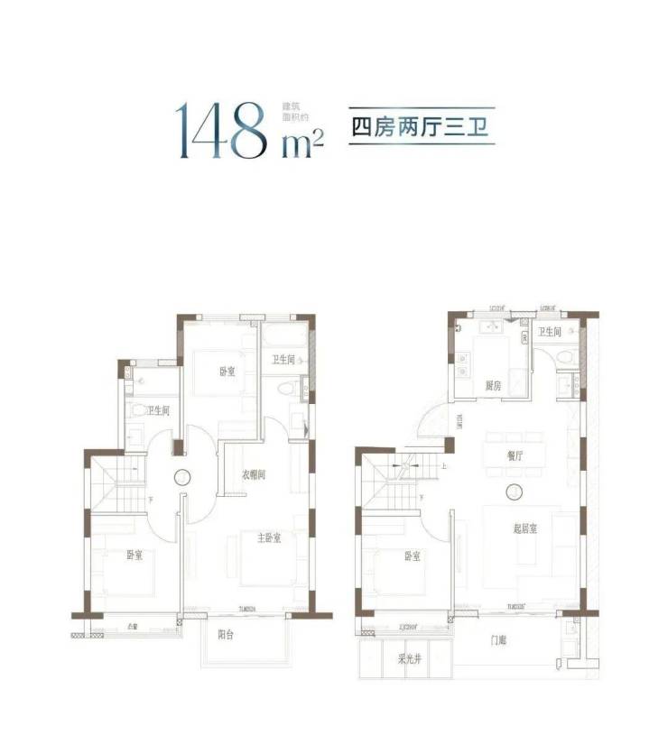 建面约148m²的宽境4房,拓宽空间尺度;大开间、进深短,通透采光;主卧独立卫浴,优雅随心的寝居感受。