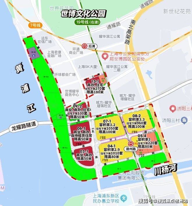 项目通过“慢行系统+立体街廓”,将社区与滨江步道、地铁站、商业街区无缝编织在一起。长达约800米的开放社区界面,北接世博公园,南融前滩商业,让城市流量自然汇入,也使“去江边”成为日常触手可及的选择。