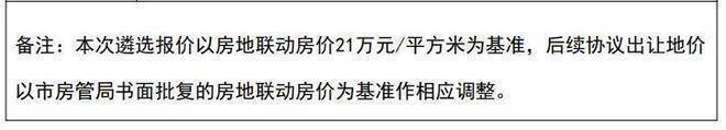 根据评分遴选相关事项,本次遴选报价以房地联动价21万元/㎡为基准。