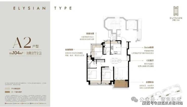 约104m²三房两厅两卫(A2户型)