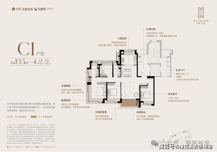 建面约135m²4放回行,室内格局是经典的飞机户型+南北通透LDKB一体化设计。是对于纯改善需求的量身定制,做了更尊奢的开间尺度。
