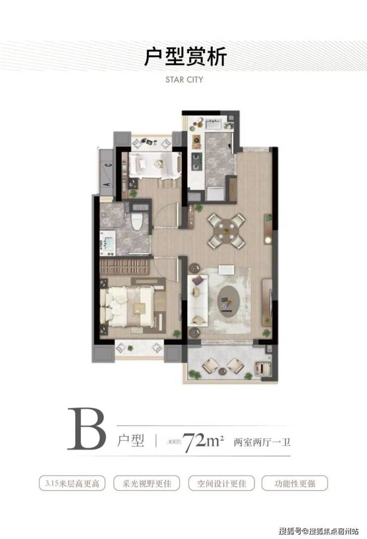 项目目前在售建面约72-88㎡2-3房,总价门槛较低。